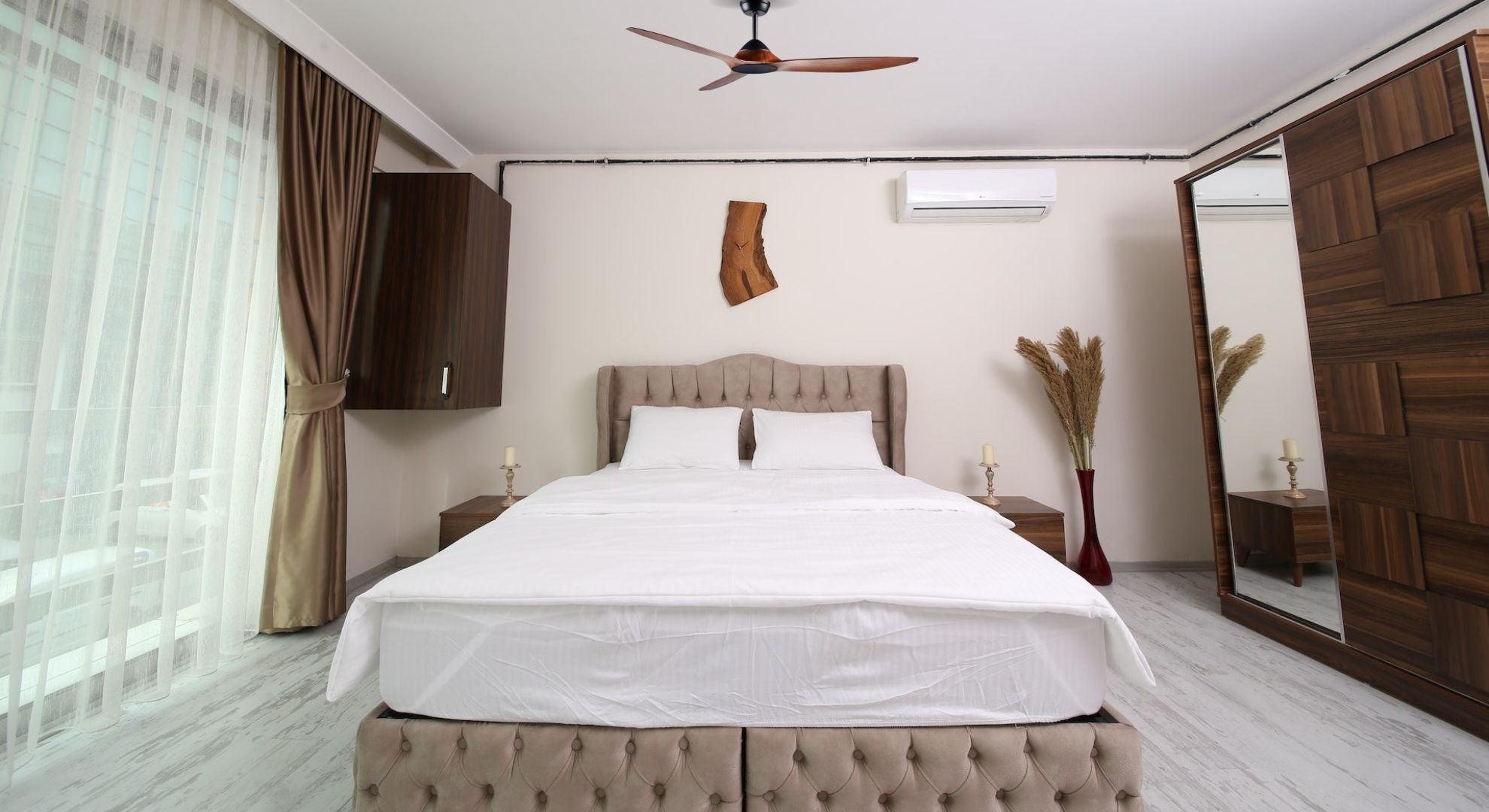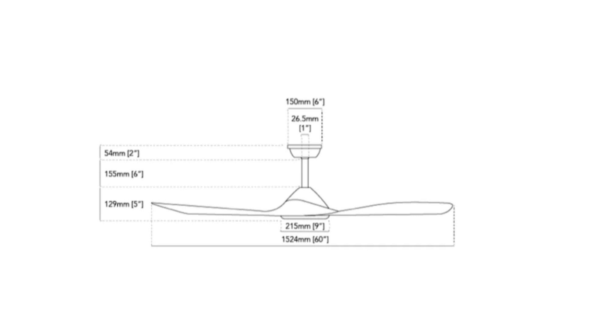 The Aircool Fan is a stylish and efficient choice for any home. With a sleek matt black and wood grain finish, this fan has a width of 60 inches and a height of 13.3 inches, making it a prominent feature in any space. The down rod measures 7 inches in length, adding to the overall stability of the fan.