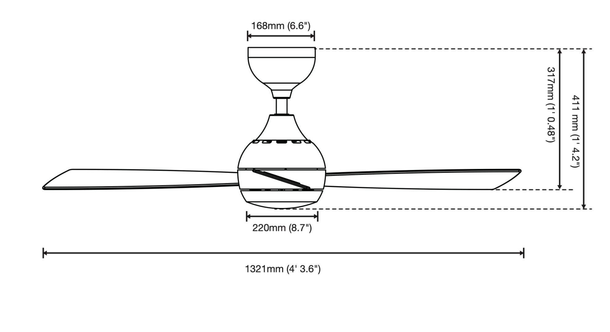 The Avalon fan is a stylish, high performance fan with a modern espresso bronze finish. The fan’s housing is made of steel and the blades are made of plywood, available in a stylish combination of anierg and mahagony. The fan measures 52” in width and 16.2” in height, with a 7” down rod. The fan offers five speed settings, which can be controlled using a convenient RF remote.