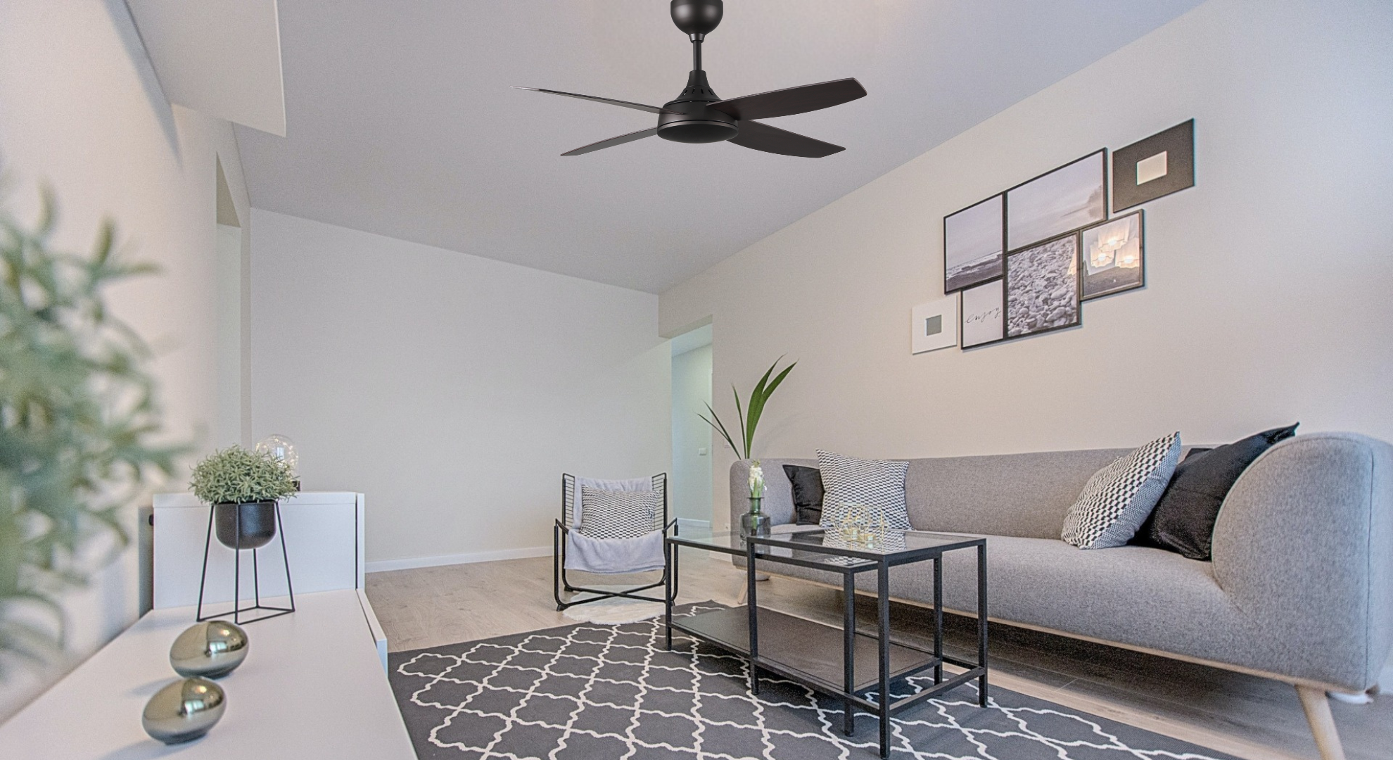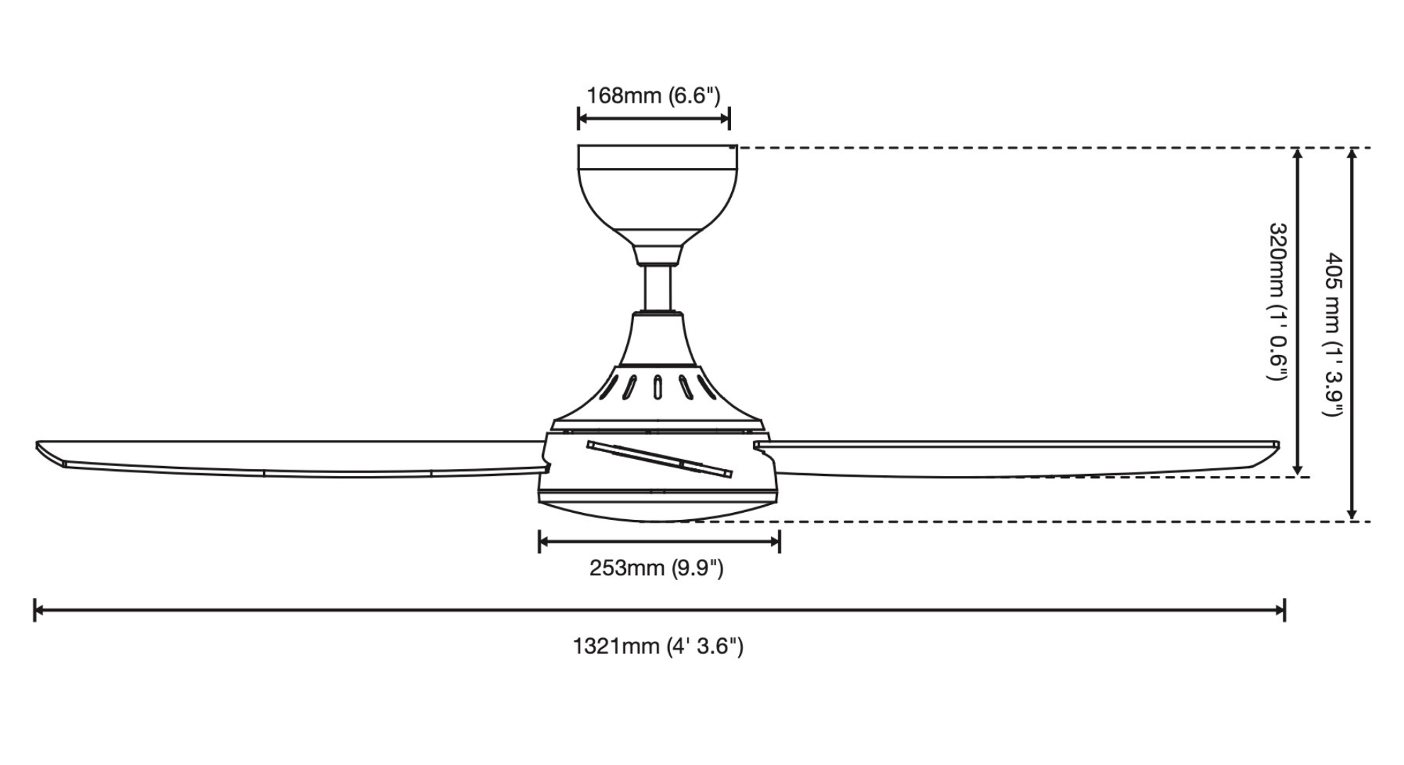 The DC Acer fan is a stylish and high-performing addition to any room. With a sleek matt black finish, the fan has a width of 52 inches and a height of 16 inches, making it a statement piece in any space. The down rod measures 7 inches in length, and the fan housing is made of durable steel. The blades are crafted from plywood and also feature a matte black finish, adding to the fan's cohesive design.