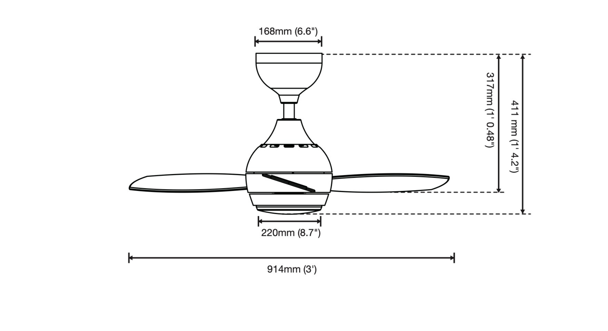 Control the fan speed using the RF remote, with a maximum speed of 5. The remote also allows you to set a timer for 1, 4, or 8 hours, and has a last memory recall feature to remember your preferred settings. It also has a Dimmable LED (Watts) - 3000K to 6500K which is 24 Wattage. Fan has an airflow of 4463 CFM, making it perfect for circulating air in larger rooms.